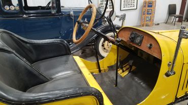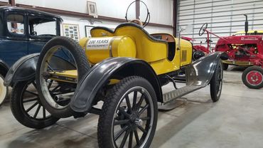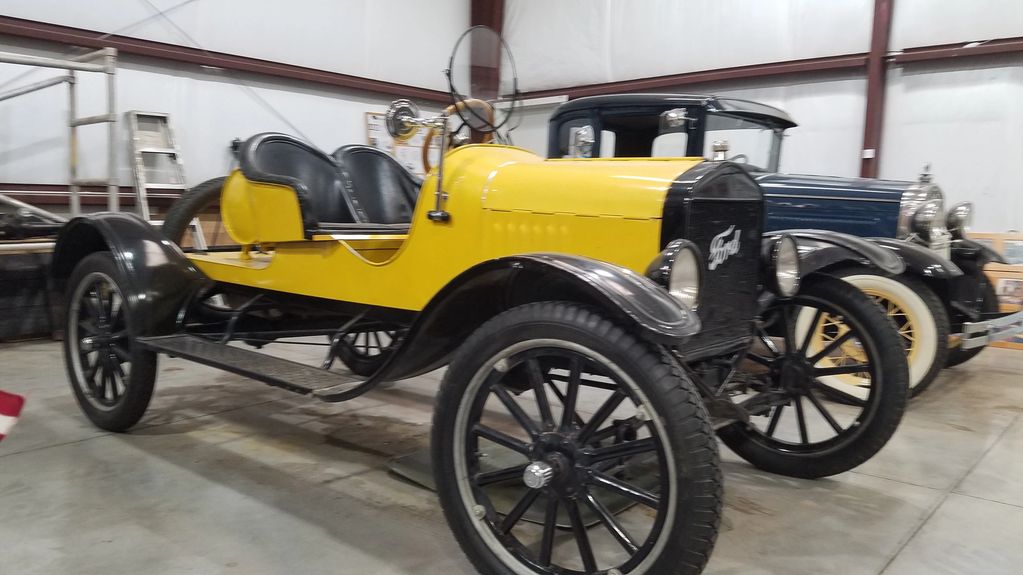 Has a electric starter starts easy and runs on mag or battery ignition excellent tires and rebuilt wood wheels monocle windshield and a ruckstell 2 speed axle.